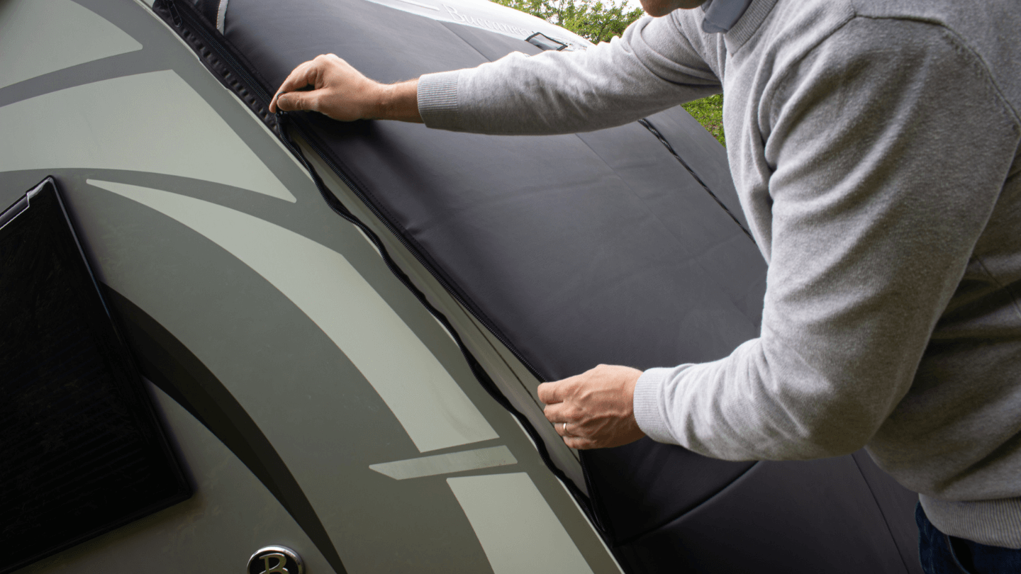 The Premium Towing Jacket acts as a protective barrier between your caravan and the harsh conditions of the open road. It prevents unsightly buildup of dirt, grime, and oily road spray that can stain or damage the front panel during travel. Exhaust fumes from your towing vehicle and splattered insects are also kept at bay, saving you time on cleaning and reducing the risk of long-term staining or corrosion. With your caravan’s front kept spotless and protected, you’ll arrive at your destination looking just as good as when you left.