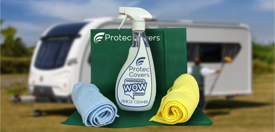 The Protec waterless vehicle cleaner is the perfect companion to your tailored cover to keep your motorhome or caravan looking pristine. This cleaner will have your leisure vehicle shining, ensuring your vehicle’s bodywork is preserved for years to come